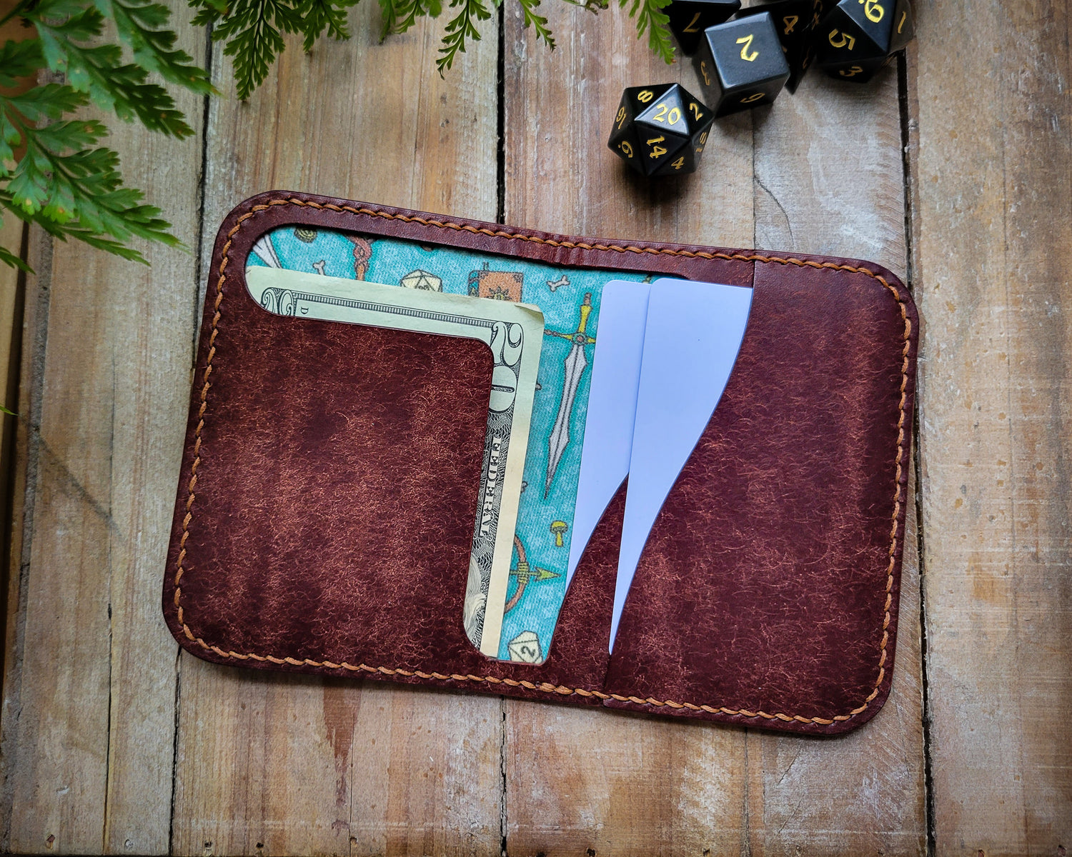 As with all handmade leather items, there will be natural variations in color and markings. Your purchase may vary from the pictures above.